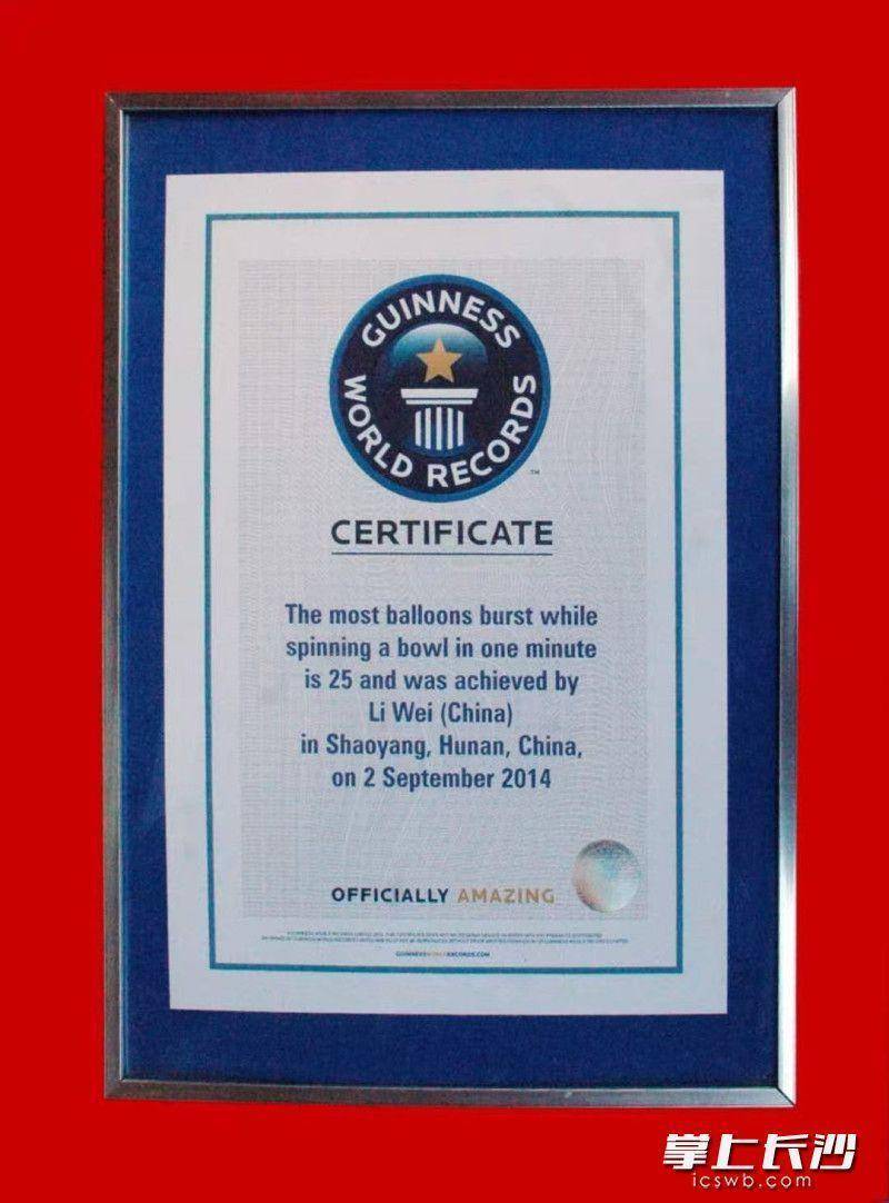从厨房到练习场,一碗一筷的热爱李伟出生于1973年,家中三代都是厨师。锅碗瓢盆,是他童年最熟悉的物件。小学六年级时,他第一次看到杂技节目“快乐厨师”,演员用棍子转盘子的画面深深印在他脑海里。从那天起,他便开始尝试用筷子转碗。转碗看似简单,实则需要极高的专注力与技巧。手腕的轻微偏差,都会导致碗体失衡滑落。为了在高速旋转中保持稳定,李伟反复调整发力方式、旋转节奏和手腕角度,在无数次的失败中,摸索出属于自己的“手感”。那些年,他摔碎过几百只碗,因此他成了去商店里买碗的常客,但他从未放弃。他说:“转碗讲究速度均衡,慢中有快,快中有巧。还要有良好的心理素质和自控能力。” 一分钟的纪录,几十年的坚持随着技艺日渐精进,李伟开始挑战更高难度的动作。他不满足于单一旋转,逐渐掌握了抛碗、跨碗、翻碗等技巧,并将它们组合成完整的表演流程。2014年9月2日,李伟迎来人生的高光时刻。在英国吉尼斯世界纪录总部的见证下,他挑战“一分钟筷子旋碗并击破气球”项目。整个过程中,碗始终保持高速旋转,击破动作一气呵成。最终,他以一分钟击破25个气球的成绩,成功刷新世界纪录,获得吉尼斯世界纪录证书。这短短的一分钟,凝结的是他几十年如一日的坚持。“办得到就是办得到,办不到就是办不到。”这是他对技艺的敬畏,也是对人生的态度。获得吉尼斯世界纪录后,李伟并未止步。他发明了“动态书法”——用转着碗的笔写书法,并因此获得国家专利。在一次庙会上,他用这种方式写下“吉祥”二字,寓意新年平安如意。“我这个节目传播出去,给大家带来快乐,我就高兴。”李伟希望能把这份快乐带给更多人。