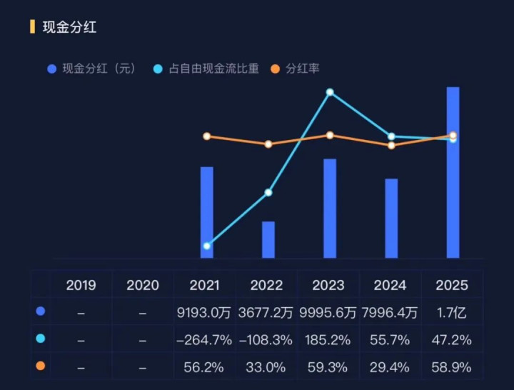 所以它的资产负债表也比较健康,账面大概9个亿的现金类资产,有息负债只有1.5个亿的短期借款。股东回报也在线,分红率少的时候在30%左右,多的时候能超50%。